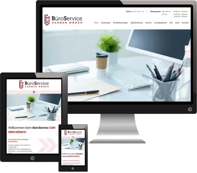 Für den Büroservice Carmen Mönch durften wir eine statische Website umsetzen auf Basis des Designs unseres Partners muthmacher. Die Seite ist ein sogenannter One-Pager, der alle Inhalte auf einer Seite vereint.